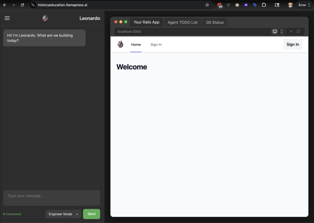 In general the LlamaPress tech stack (including LlamaBot, our LangGraph agent runtime, and Leonardo, our actual coding agent), allows us to develop powerful AI applications with powerful agent experiences inside the application.